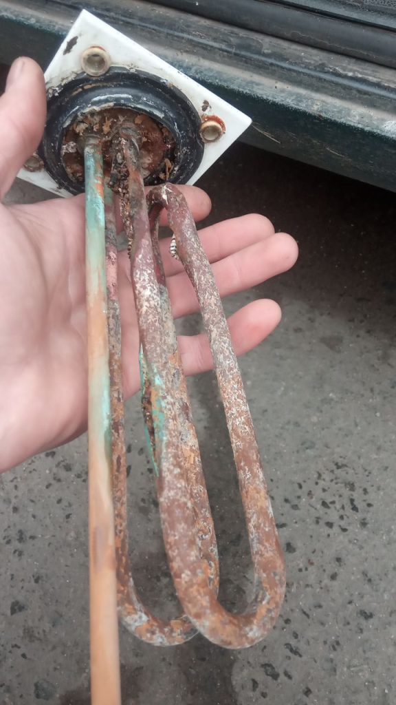Жесткая вода – это источник большого количества накипи, которая приводит к сокращению срока эксплуатации нагревательного элемента. Когда на ТЭНе скапливается большой слой накипи, она распирает его во все стороны, создавая множество микротрещин на его поверхности. Из-за этого может появиться ощущение пощупывания током от воды из бойлера либо прибор полностью перестанет греть ее.